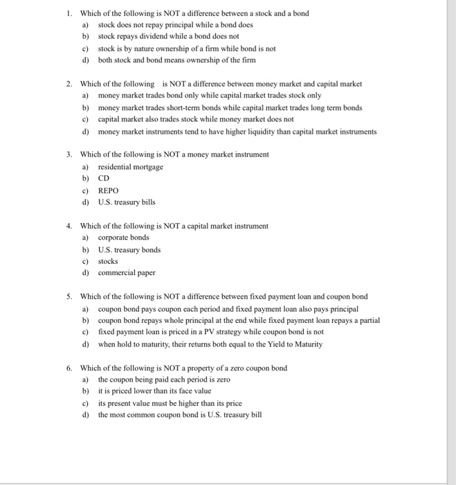 Solved Which Of The Following Is Not A Money Market Instr Chegg Com